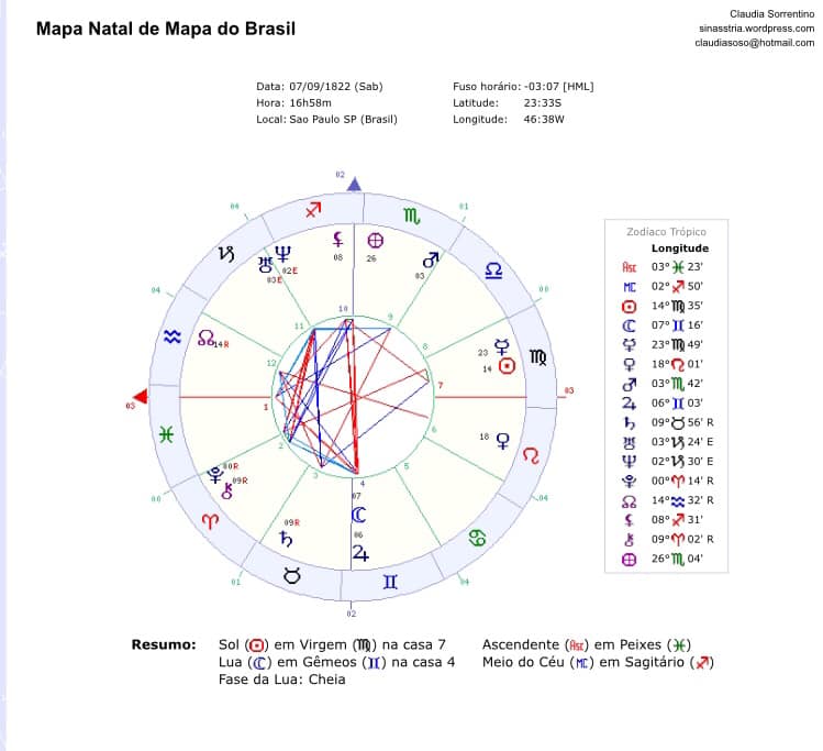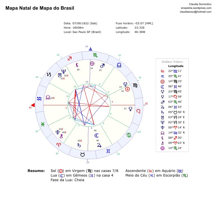 Curioso também é o fato de a casa 10 do Brasil, que é associada aos governantes, estar em Escorpião e de ser atribuída a Dom Pedro a frase Independência ou Morte, frase a cara do dramático e intenso signo de Escorpião ♏️.