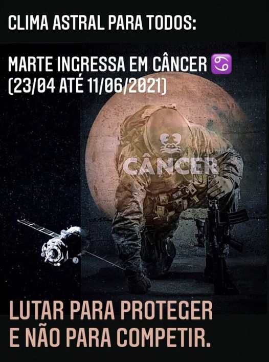 O planeta da ação Marte, conhecido como o soldado do Zodíaco, aquele que nos impulsiona as tomadas de ações imediatistas, ingressou no signo de Câncer, o 2º dos três signos do elemento água.